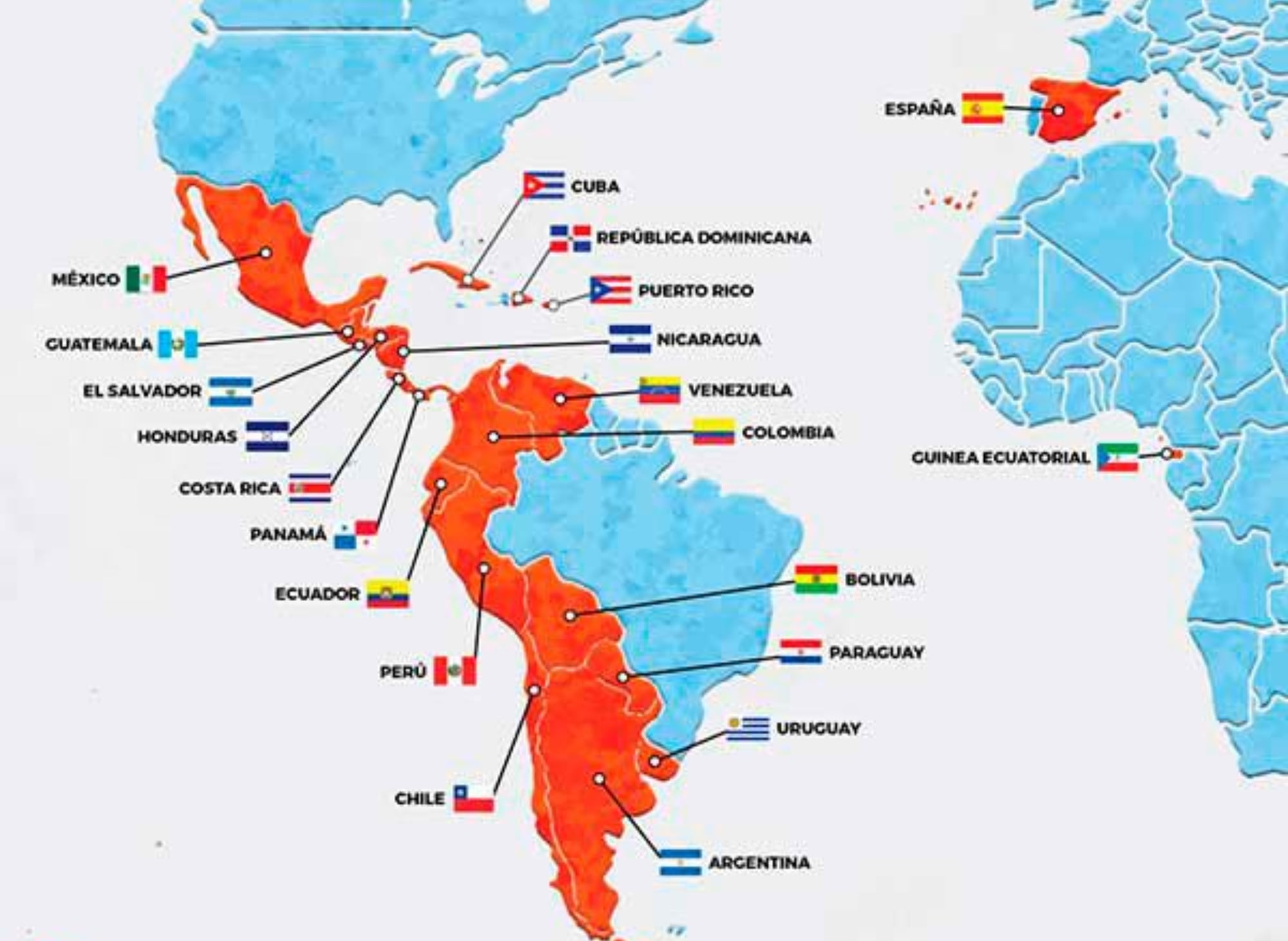 América es el segundo continente más grande del mundo después de Asia, y fue en parte cole allí la implementación del idioma español en gran parte de Latinoamérica. Estos son los países que hablan en español en esta región del planeta.