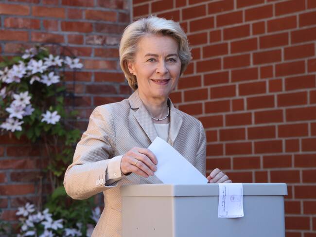 Ursula von der Leyen, presidenta de la Comisión Europea, vota en Burgdorf, Alemania, 09 de junio de 2024. Las elecciones al Parlamento Europeo se celebrarán en todos los estados miembros de la UE del 06 al 09 de junio de 2024, y las elecciones europeas en Alemania se celebrarán el 09 de junio. EFE/CLEMENS BILAN / CLEMENS BILAN (EFE)