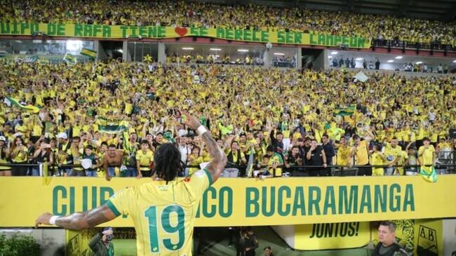 Malas noticias para Atlético Bucaramanga. La Dimayor comunicó a través de la resolución No. 049 de 2024 que el equipo ‘leopardo’ será sancionado con tres fechas sin público en el Estadio Alfonso López después de que los hinchas invadieran el campo de juego al finalizar el partido de ida de la final ante Independiente Santa Fe. El conjunto de la ‘Ciudad Bonita’ también deberá pagar una multa de 13.650.000 pesos colombianos.
