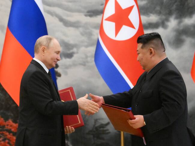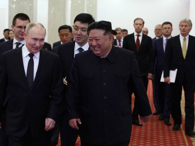 La firma del acuerdo se produjo después de que Putin y el líder norcoreano, Kim Jong-un, celebraran primero una cumbre ampliada y luego un cara a cara de dos horas en Pionyang, ciudad que el mandatario ruso ha visitado hoy por primera vez en 24 años, algo que ilustra bien la relación de mutua necesidad que se ha establecido recientemente entre ambos países.