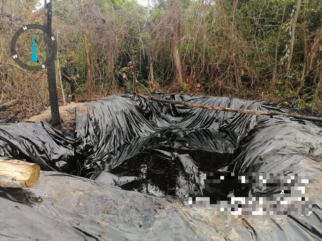 Inicialmente los soldados llegaron hasta la vereda Campo Seis, donde se hallaban dos refinerías ilegales y dos piscinas, las cuales tenían la capacidad para hurtar, procesar y almacenar más de 15.000 galones de crudo. En este espacio además se procesaba el crudo para convertirlo en combustible artesanal conocido como pategrillo, que es usado en la producción de cocaína.