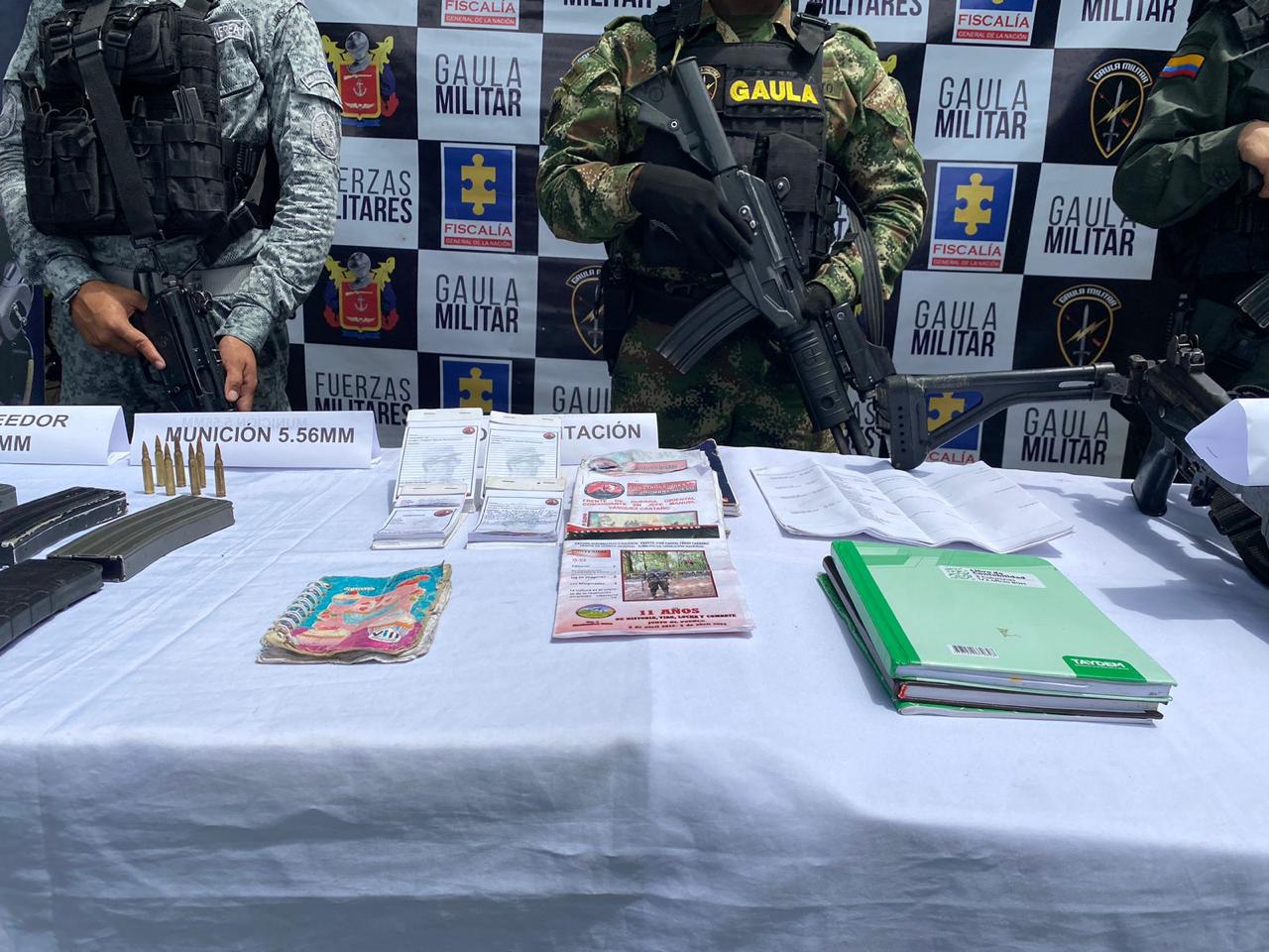 En el desarrollo de la operación, se logró incautar armas largas, un arma corta, proveedores para fusil con munición, proveedores para pistola con munición, material de intendencia y equipos de comunicaciones, así como la destrucción de cuatro minas antipersonales instaladas en lugar de los hechos. El material de guerra fue puesto a disposición de las autoridades competentes, para iniciar con su proceso de judicialización.