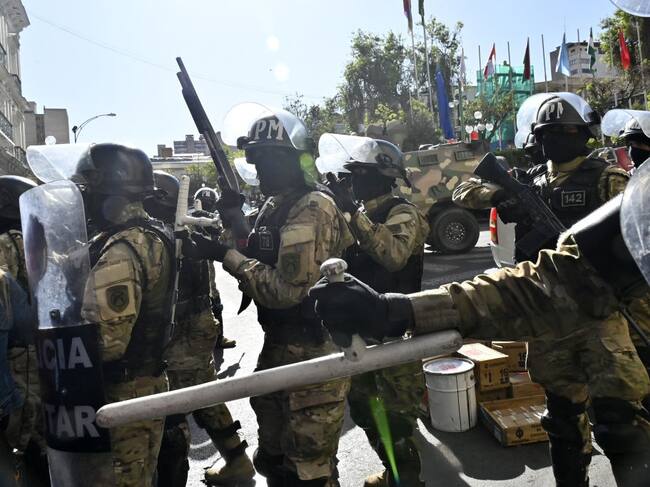 Militares en las puertas de la sede de Gobierno de Bolivia. Foto: AIZAR RALDES/AFP via Getty Images / AIZAR RALDES