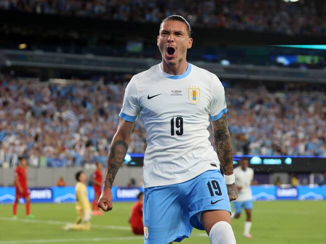 East Rutherford (United States), 28/06/2024.- Uruguay forward Darwin Nunez celebrates scoring during the first half of a CONMEBOL Copa America 2024 group C match against Bolivia, in East Rutherford, New Jersey, USA, 27 June 2024. EFE/EPA/JUSTIN LANE / JUSTIN LANE (EFE)