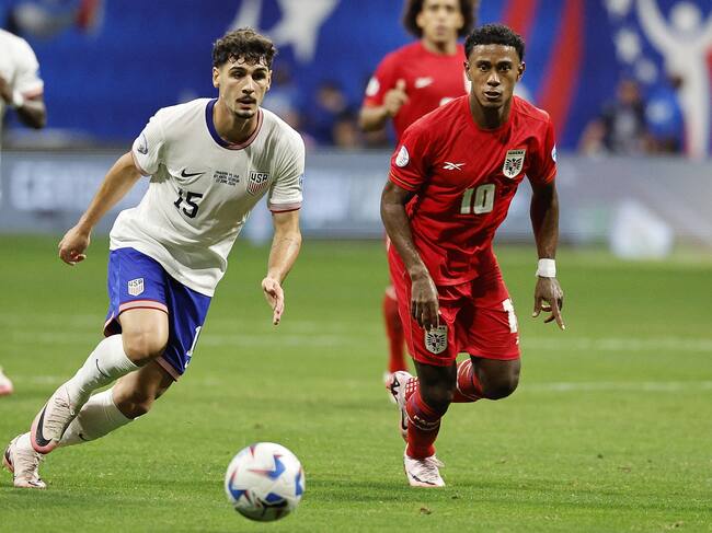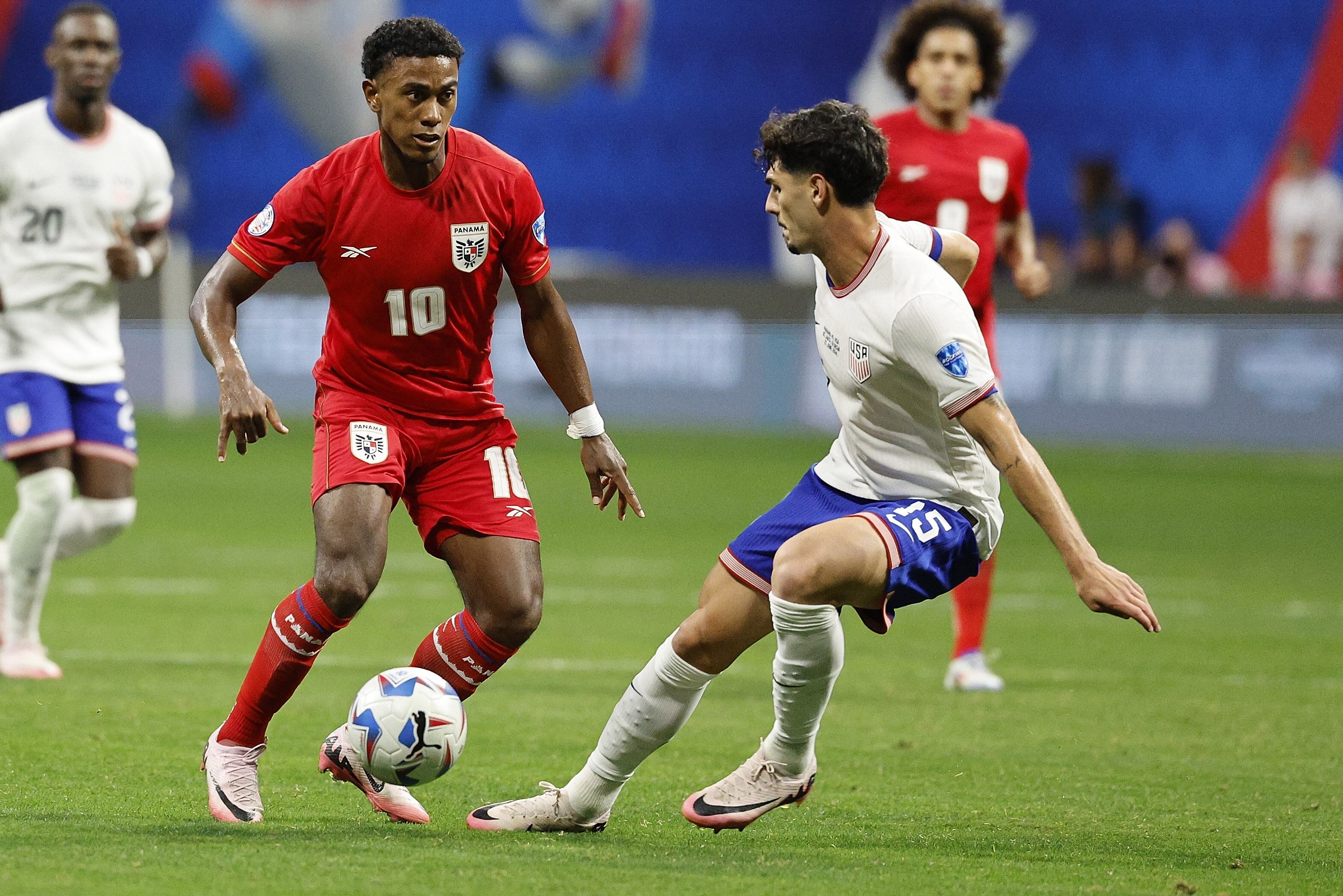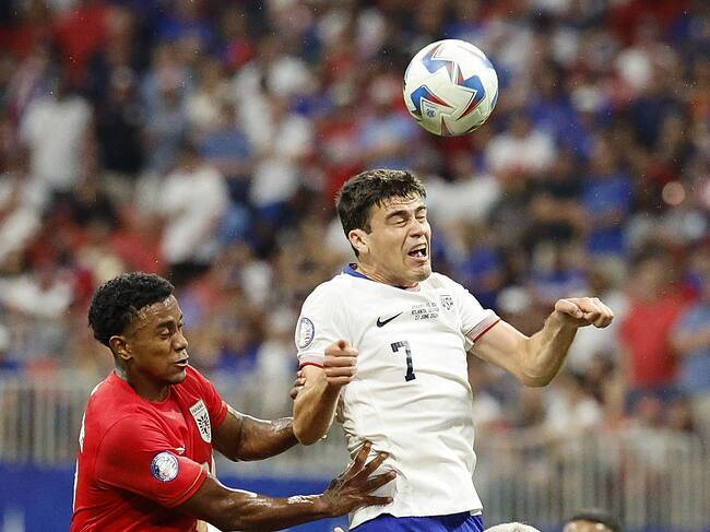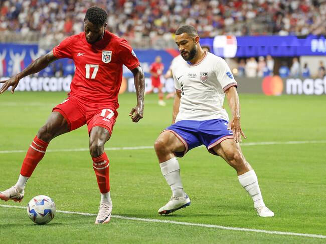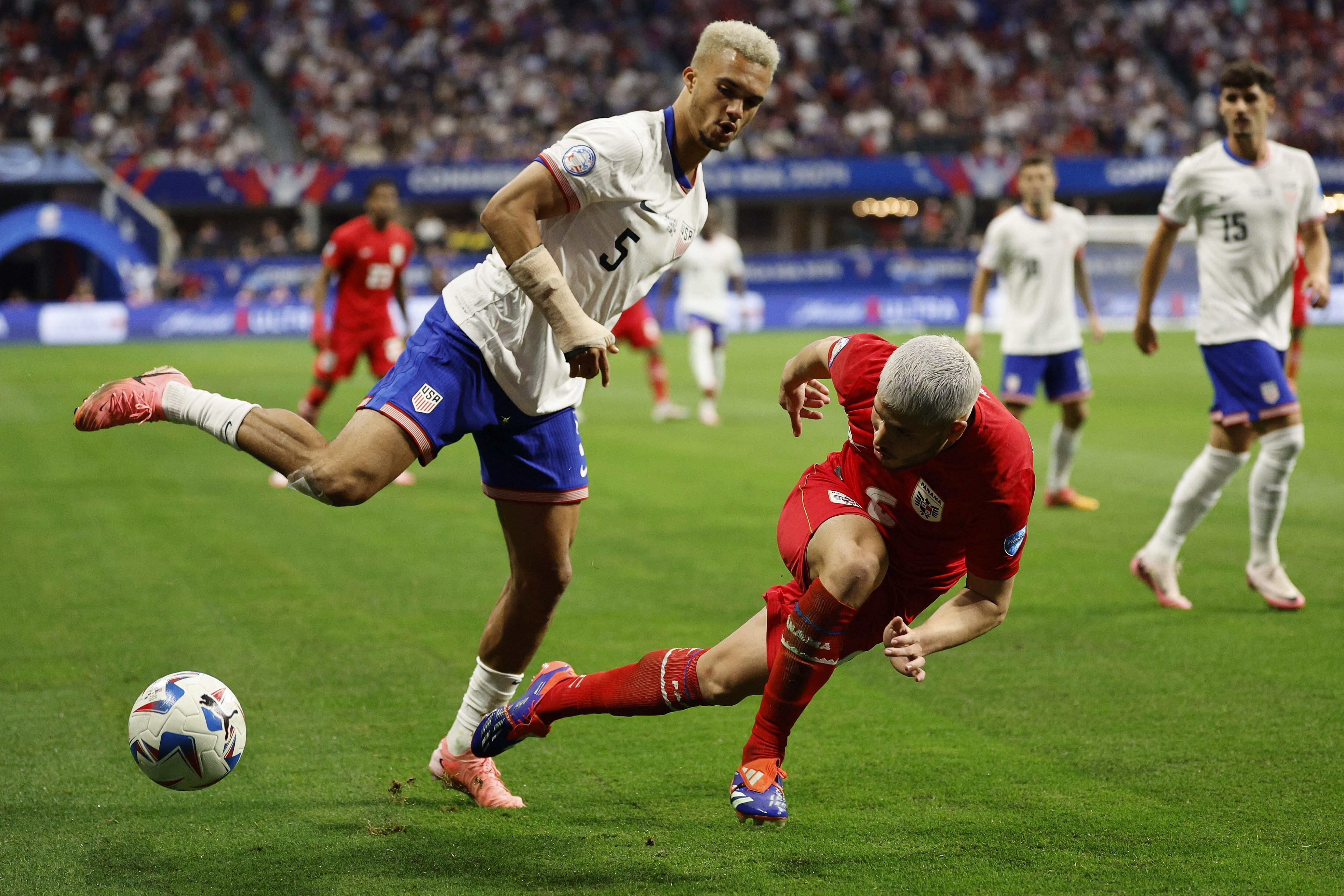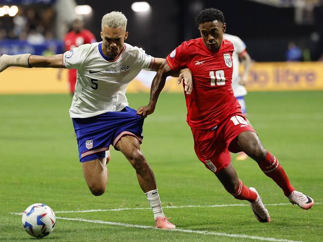 Atlanta (United States), 27/06/2024.- Cameron Carter-Vickers of the United States (L) and Jose Fajardo of Panama (R) battle for the ball during the first half of the CONMEBOL Copa America 2024 group C match between Panama and USA, in Atlanta, Georgia, USA, 27 June 2024. (Estados Unidos) EFE/EPA/ERIK S. LESSER / ERIK S. LESSER