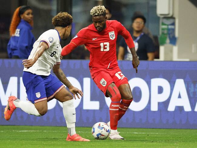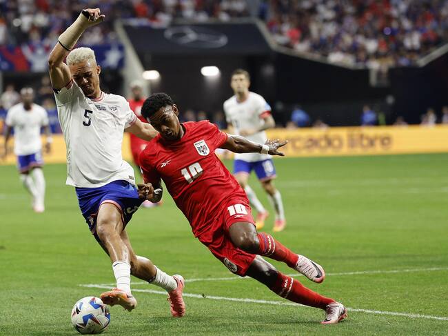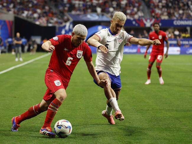 Atlanta (United States), 27/06/2024.- Jose Fajardo of Panama (L) and Cameron Carter-Vickers of the United States (R) battle for the ball during the first half of the CONMEBOL Copa America 2024 group C match between Panama and USA, in Atlanta, Georgia, USA, 27 June 2024. (Estados Unidos) EFE/EPA/ERIK S. LESSER / ERIK S. LESSER