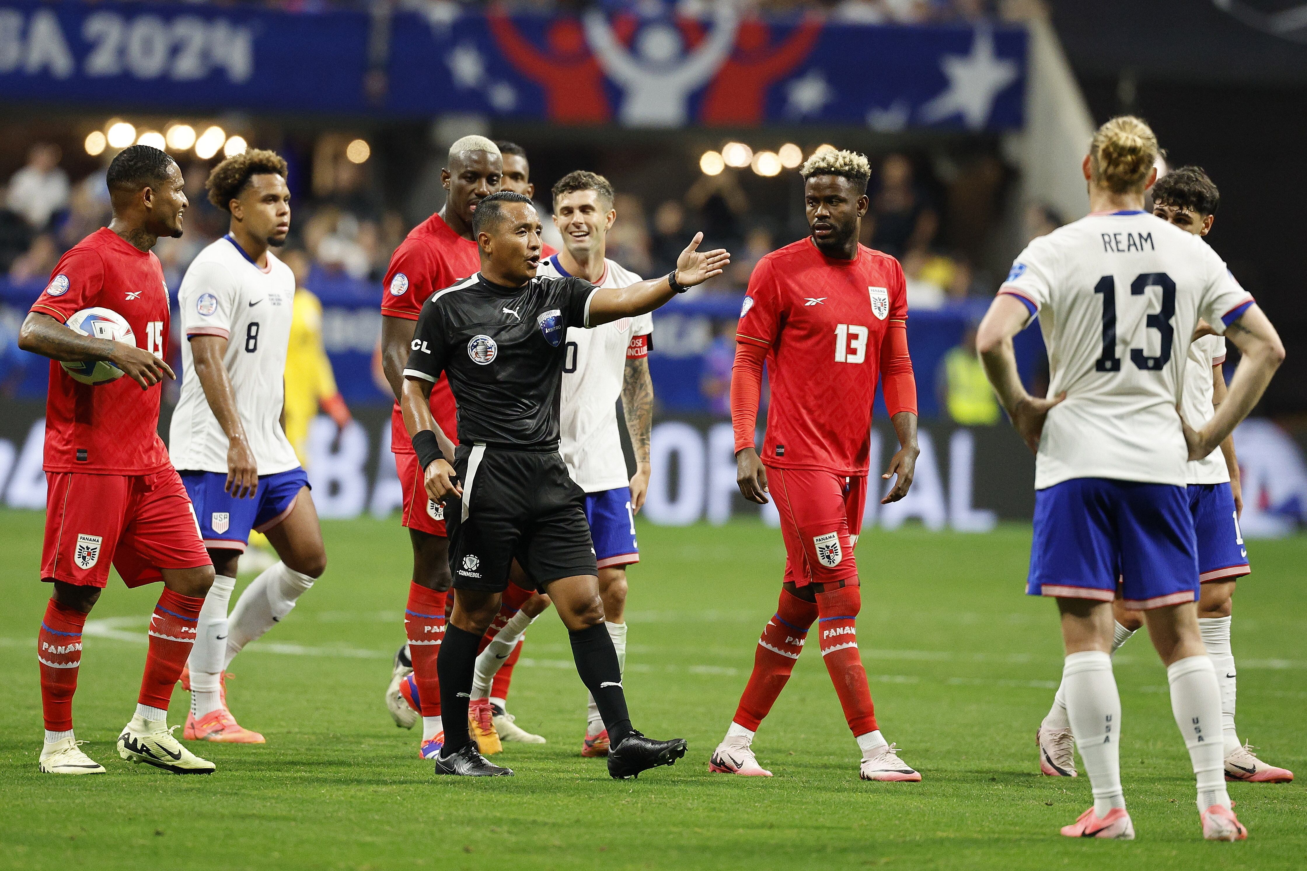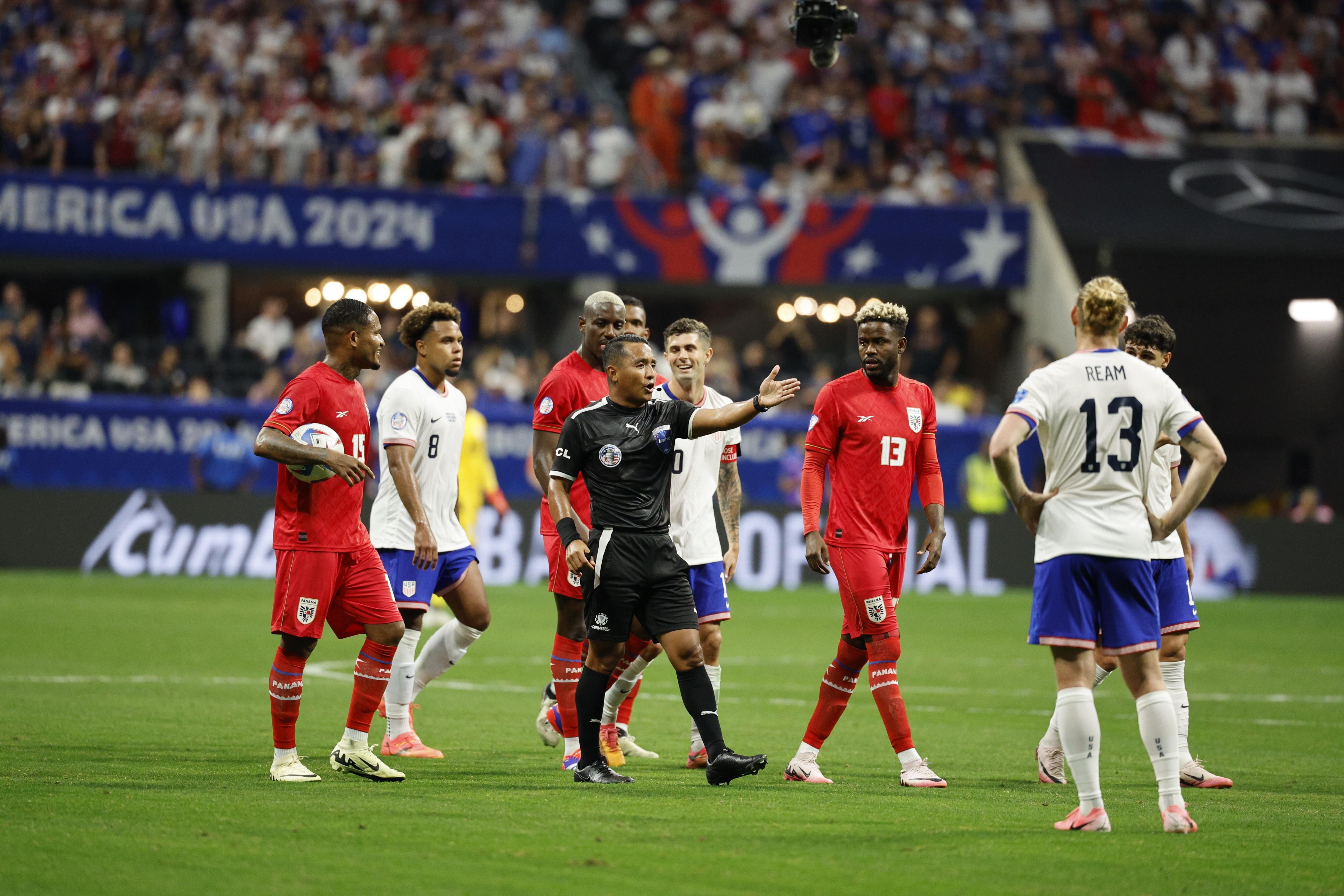 Atlanta (United States), 27/06/2024.- Referee Ivan Barton of El Salvador calls no penalty during the first half of the CONMEBOL Copa America 2024 group C match between Panama and USA, in Atlanta, Georgia, USA, 27 June 2024. EFE/EPA/ERIK S. LESSER / ERIK S. LESSER