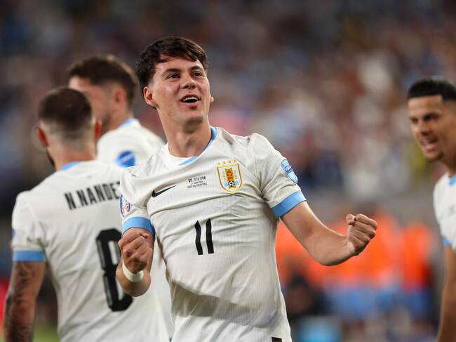 East Rutherford (United States), 28/06/2024.- Uruguay midfielder Facundo Pellistri celebrates his goal during the first half of a CONMEBOL Copa America 2024 group C match against Bolivia, in East Rutherford, New Jersey, USA, 27 June 2024. EFE/EPA/JUSTIN LANE / JUSTIN LANE