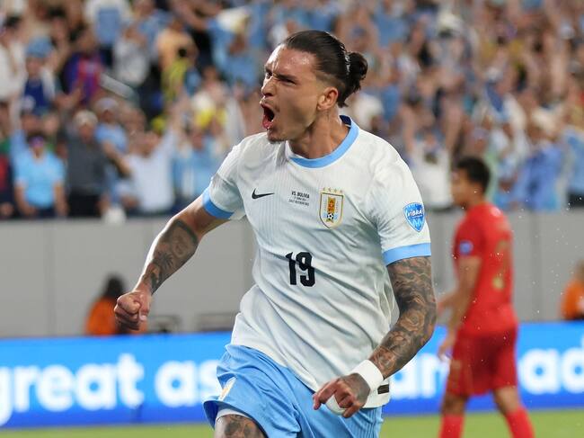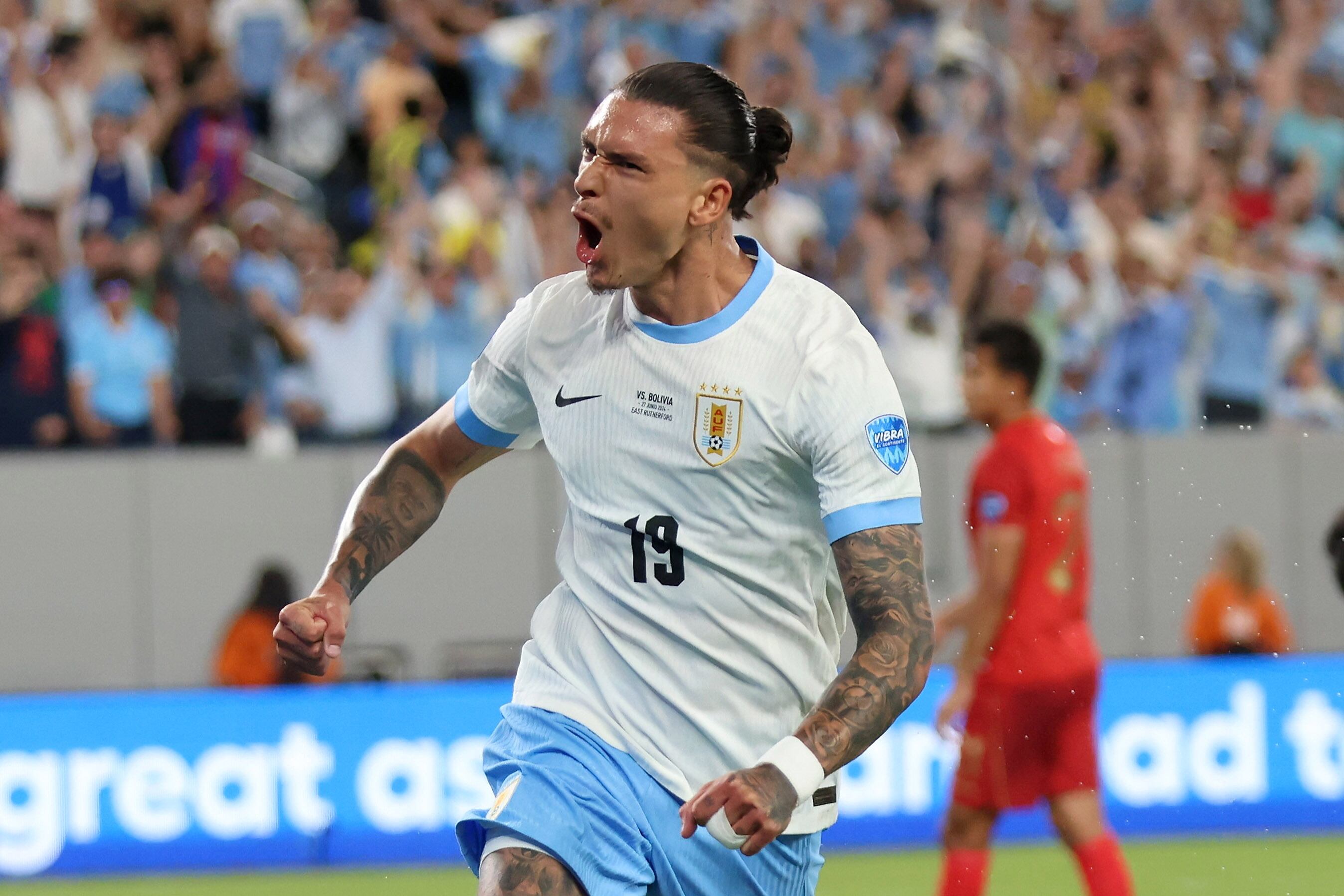 East Rutherford (United States), 28/06/2024.- Uruguay forward Darwin Nunez celebrates scoring during the first half of a CONMEBOL Copa America 2024 group C match against Bolivia, in East Rutherford, New Jersey, USA, 27 June 2024. EFE/EPA/JUSTIN LANE / JUSTIN LANE