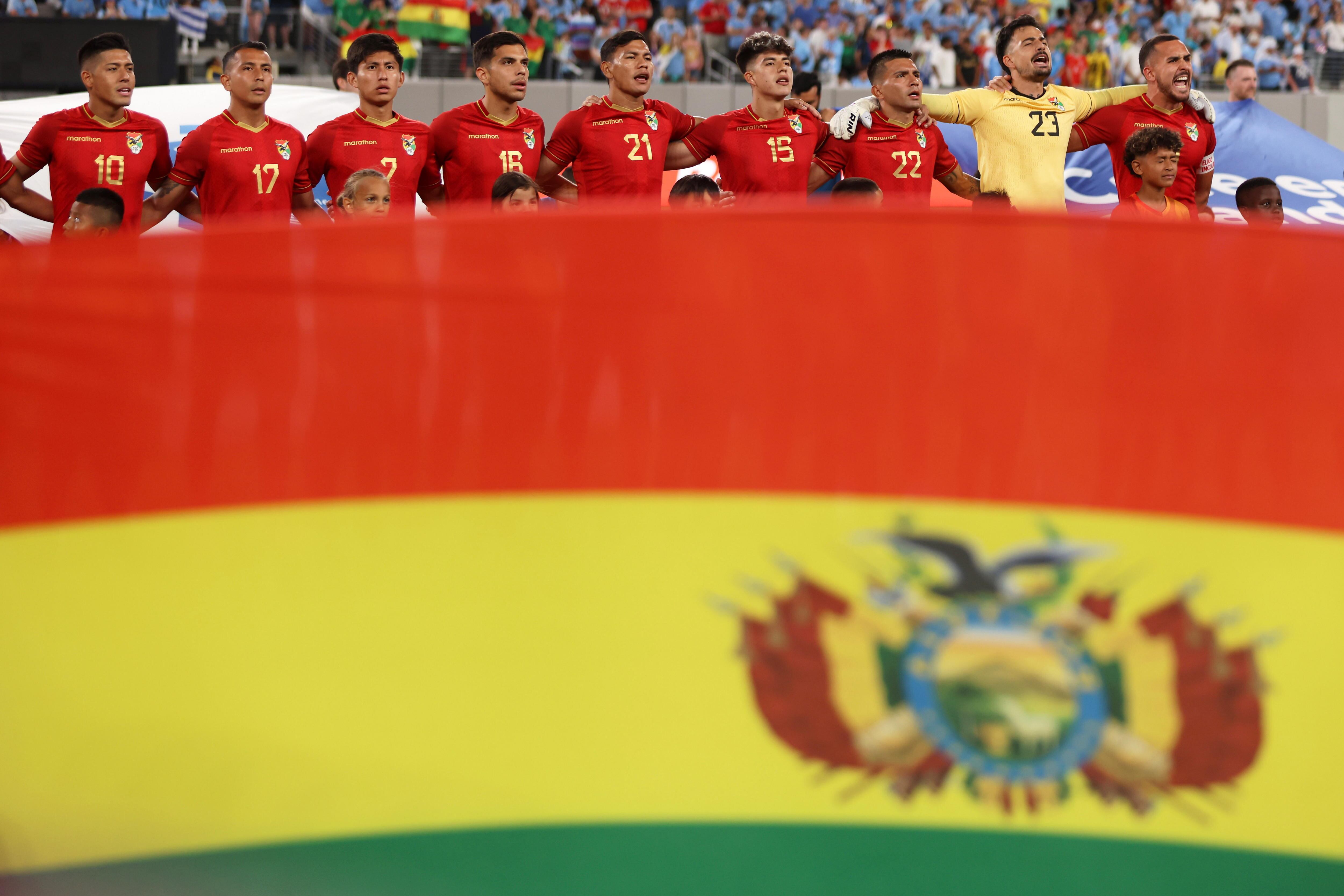 East Rutherford (United States), 28/06/2024.- Bolivia squads during the national anthem before the start of the CONMEBOL Copa America 2024 group C match against Uruguay, in East Rutherford, New Jersey, USA, 27 June 2024. EFE/EPA/JUSTIN LANE / JUSTIN LANE
