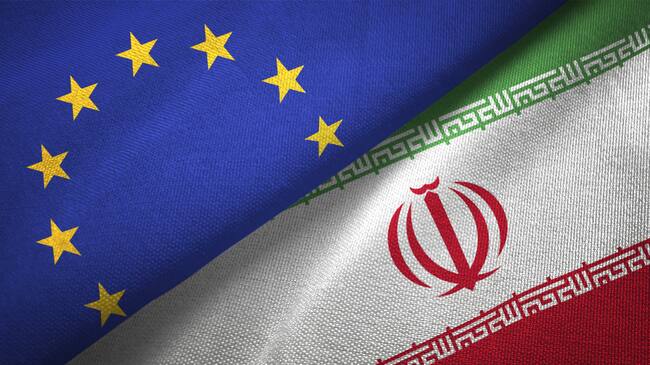Banderas de la Unión Europea e Irán. Foto: Getty Images / Oleksii Liskonih