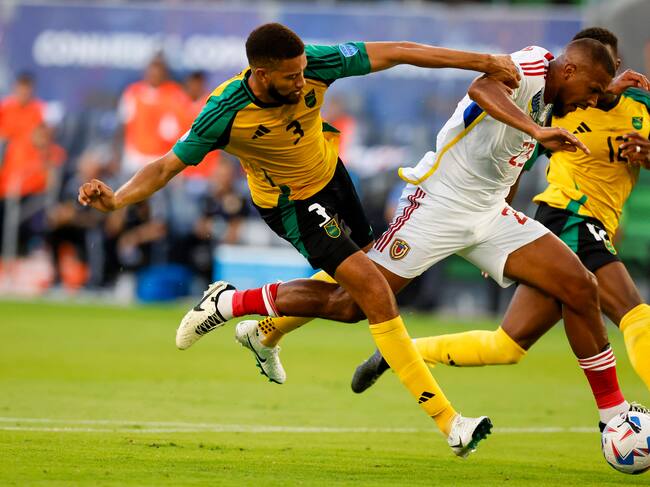 Austin (United States), 01/07/2024.- Jamaica defender Michael Hector (L), Venezuela forward Jose Salomon Rondon (C), and Jamaica defender Wes Harding (R) in action during the second half of the CONMEBOL Copa America 2024 group B match between Jamaica and Venezuela in Austin, Texas, USA, 30 June 2024. EFE/EPA/ADAM DAVIS / ADAM DAVIS (EFE)