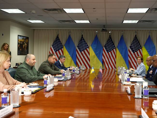 Reunión entre secretario de Defensa estadounidense, Lloyd Austin y su homólogo ucraniano, Rustem Umerov. Foto: Kevin Dietsch/Getty Images / Kevin Dietsch