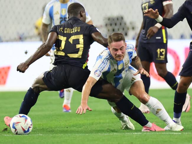 Houston (United States), 05/07/2024.- Argentina midfielder Alexis Mac Allister (R) draws a foul against Ecuador midfielder Moisés Caicedo (L) during the CONMEBOL Copa America 2024 quarterfinals soccer match between Argentina and Ecuador, in Houston, Texas, USA, 04 July 2024. EFE/EPA/LESLIE PLAZA JOHNSON / LESLIE PLAZA JOHNSON