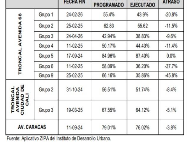 El ente de control revela que en todas las troncales hay atrasos, en algunos hasta del 45%.