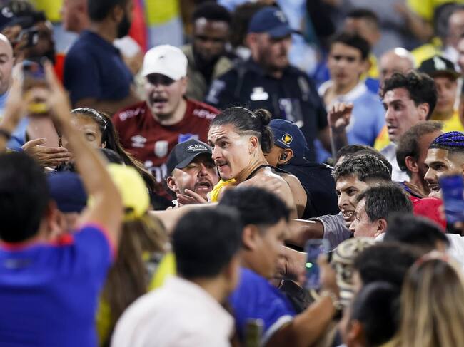 Darwin Núñez, Ronald Araújo y José María Giménez, entre otros jugadores uruguayos, se treparon a la grada para pelear con aficionados colombianos tras caer derrotados por 0-1 en la semifinal disputada este miércoles en el Bank of America Stadium de Charlotte (Carolina del Norte).