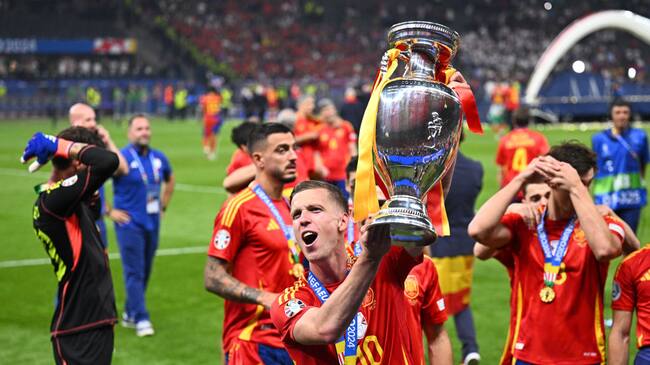 Jugadores de España con el trofeo de la Eurocopa 2024. Foto: Tom Weller/picture alliance via Getty Images / picture alliance