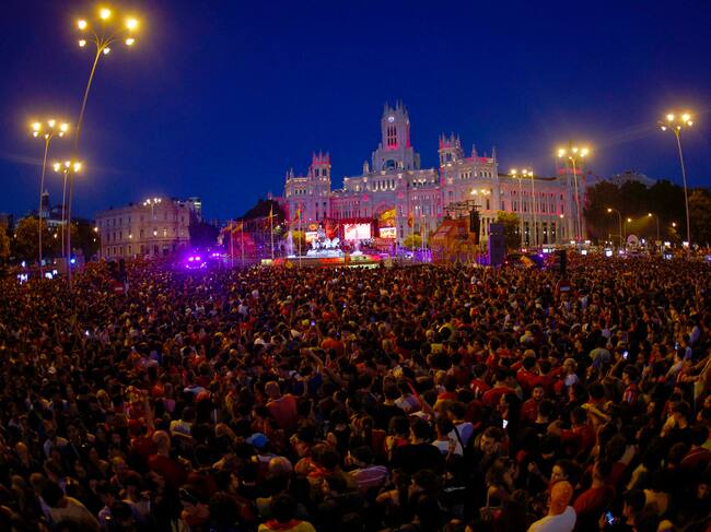 MADRID, 15/07/2024.- Miles de aficionados se concentran este lunes en Cibeles para celebrar con la selección española el título de campeones de la Eurocopa tras vencer ayer en la final a Inglaterra. EFE / Fernando Villar. / FERNANDO VILLAR