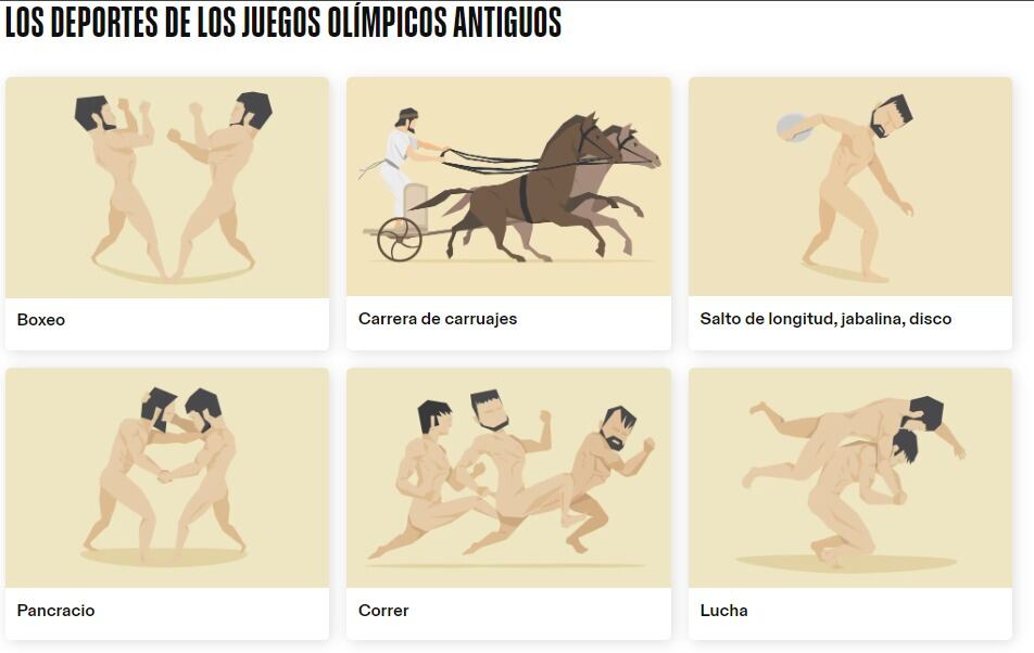 “Con cada edición, nuevos deportes se sumaban a las Olimpiadas, entre ellos se incluían las carreras de caballos, el boxeo, la lucha libre y el pentatlón (una competición que reunía salto de longitud, lanzamiento de jabalina, lanzamiento de disco, carrera a pie y lucha libre)”, explicaron.