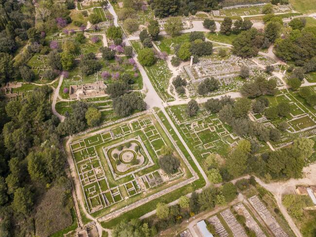 Vista aérea de la antigua Olimpia, Santuario en Elis en la península de Peloponeso. Foto: Getty Images. / Iurii Buriak