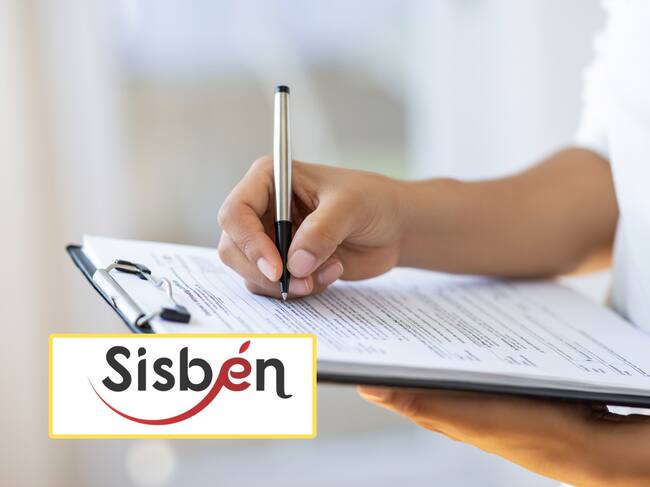 Persona haciendo una encuesta, encima el logo del Sisbén (GettyImages / redes sociales)