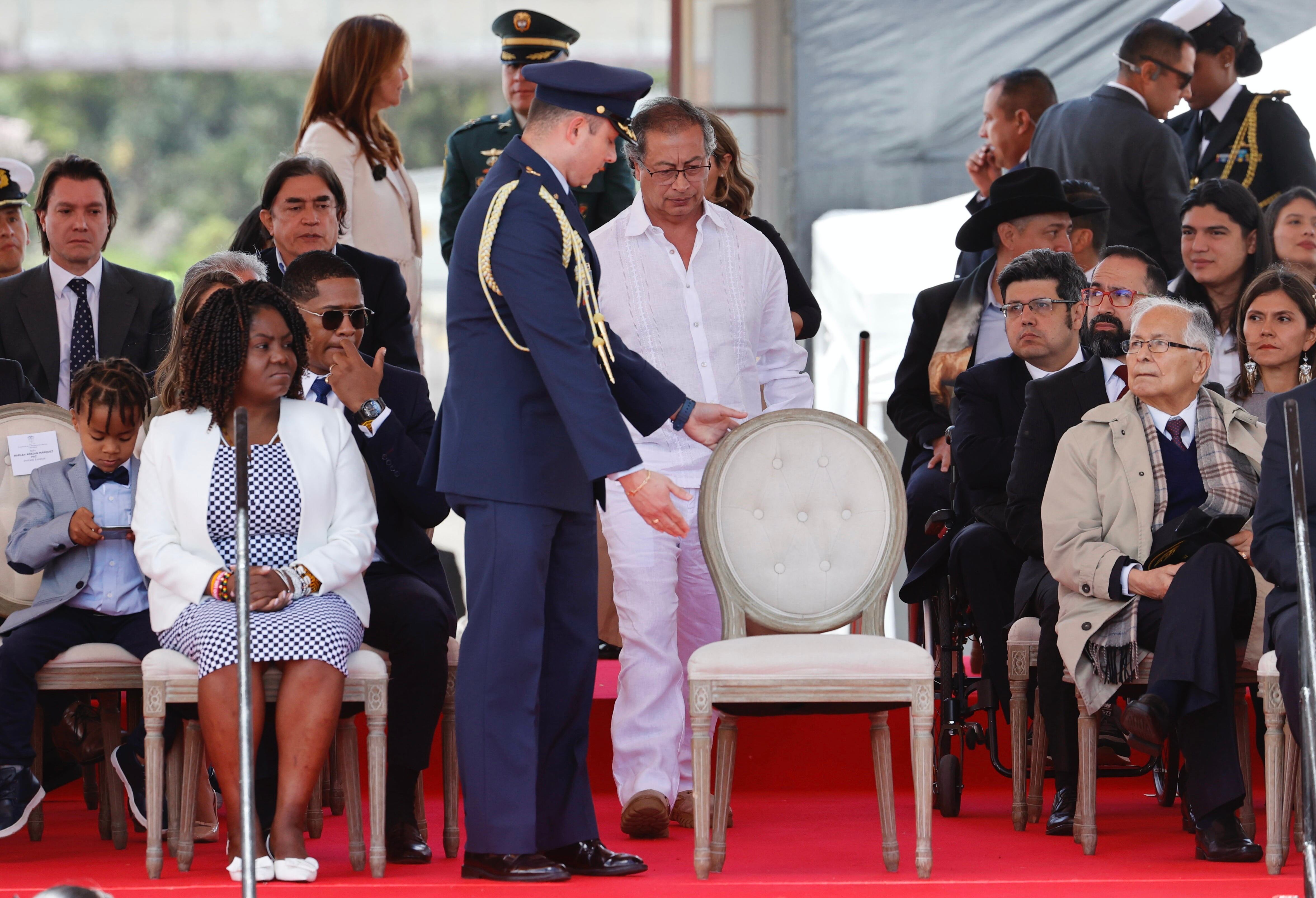 AME3409. BOGOTÁ (COLOMBIA), 20/07/2024.- La vicepresidenta de Colombia, Francia Márquez (i), y el mandatario colombiano, Gustavo Petro (c), asisten al desfile militar en conmemoración del Día de la Independencia, este sábado en Bogotá (Colombia). Este sábado 20 de Julio Colombia celebra su Día de la Independencia en un desfile militar con presencia de hombres y mujeres de las Fuerzas Militares y Policía Nacional. EFE/ Mauricio Dueñas Castañeda / Mauricio Dueñas Castañeda