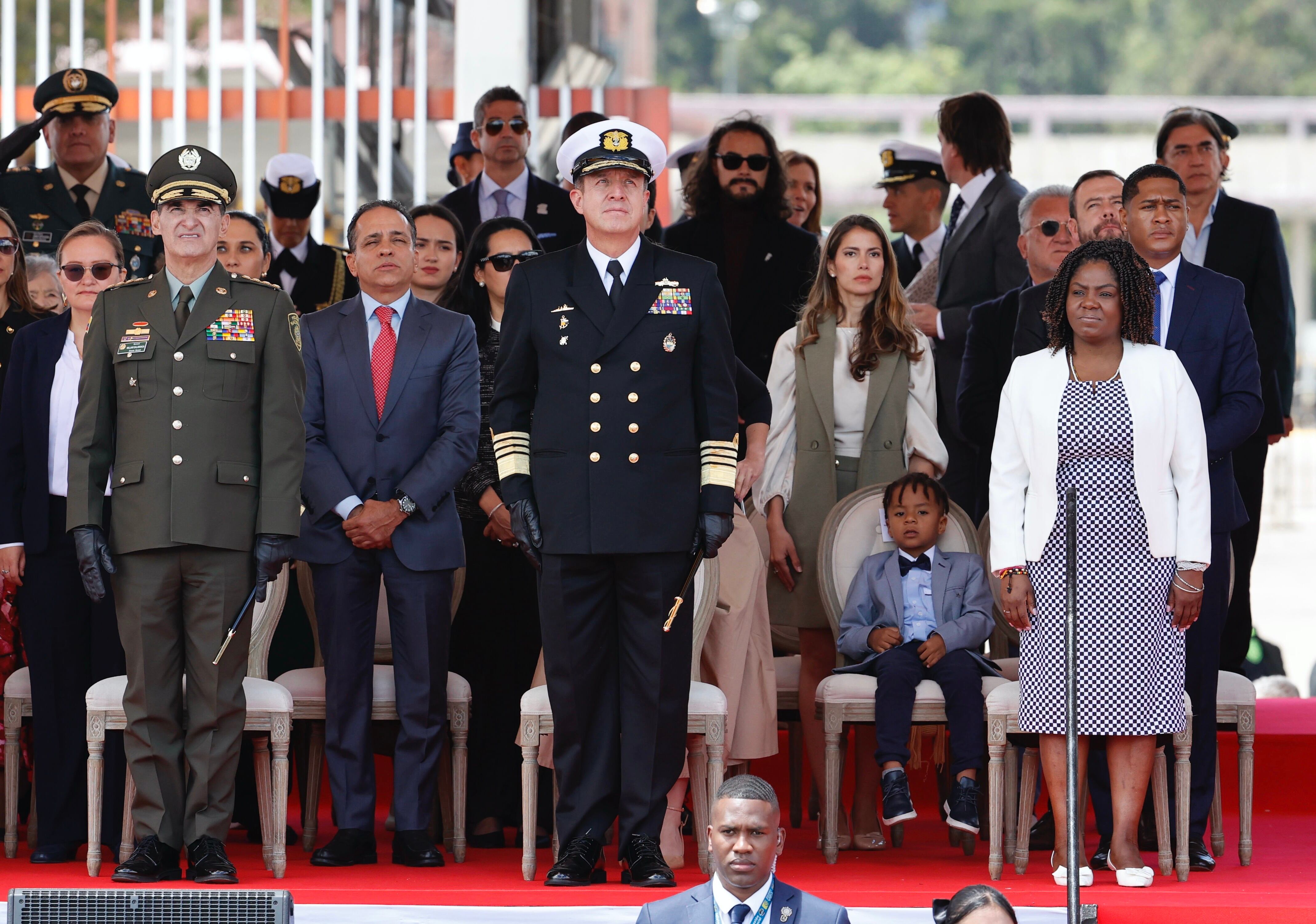 AME3409. BOGOTÁ (COLOMBIA), 20/07/2024.- El director de la Policía, el general Willian Salamanca (i); el comandante de las Fuerzas Armadas, almirante Francisco Cubides (c), y la vicepresidenta de Colombia, Francia Marquéz (d), asisten al desfile militar en conmemoración del Día de la Independencia, este sábado en Bogotá (Colombia). Este sábado 20 de Julio Colombia celebra su Día de la Independencia en un desfile militar con presencia de hombres y mujeres de las Fuerzas Militares y Policía Nacional. EFE/ Mauricio Dueñas Castañeda / Mauricio Dueñas Castañeda