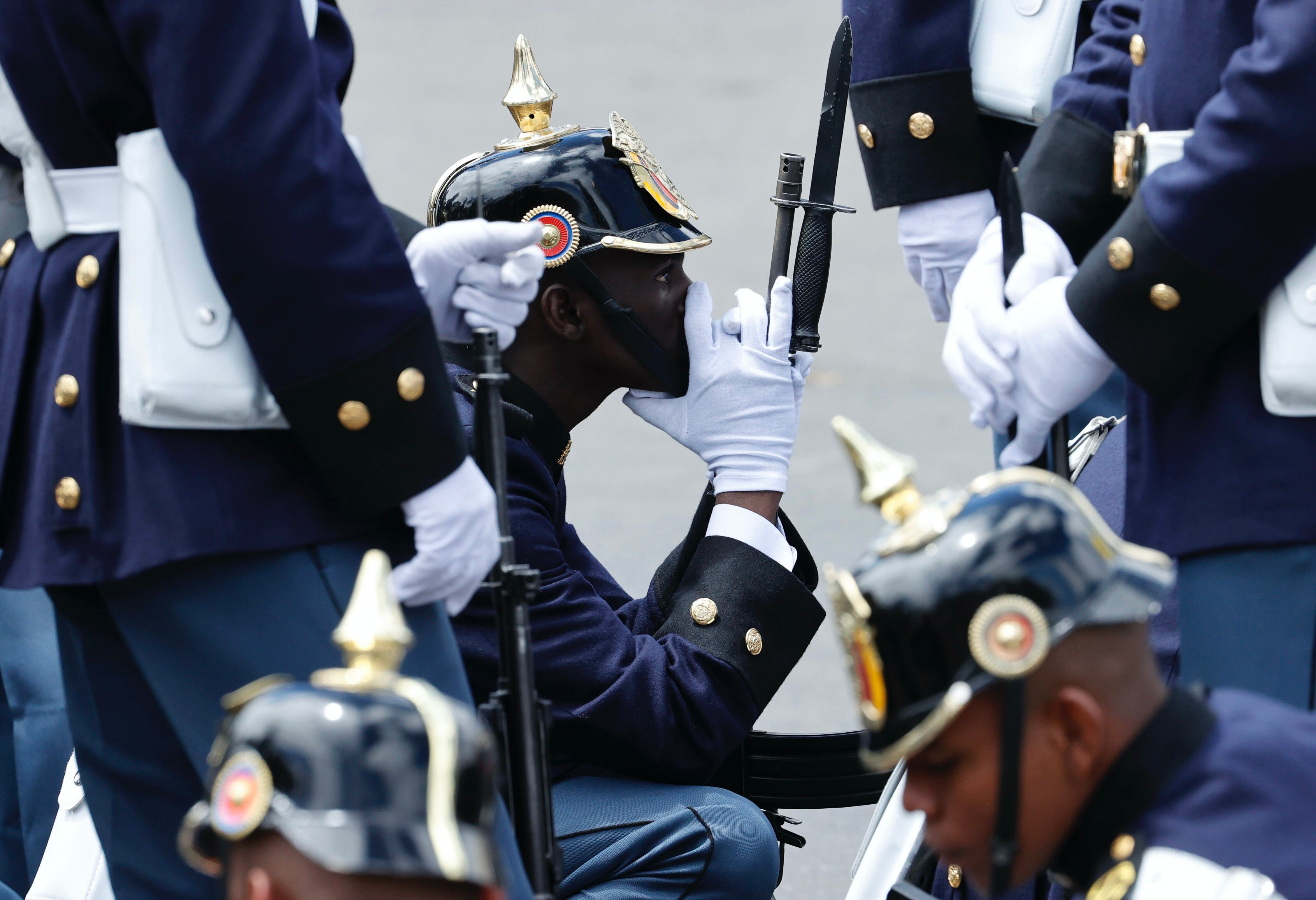 AME3409. BOGOTÁ (COLOMBIA), 20/07/2024.- Un soldado espera el inicio del desfile militar en conmemoración del Día de la Independencia, este sábado en Bogotá (Colombia). Este sábado 20 de Julio Colombia celebra su Día de la Independencia en un desfile militar con presencia de hombres y mujeres de las Fuerzas Militares y Policía Nacional. EFE/ Mauricio Dueñas Castañeda / Mauricio Dueñas Castañeda