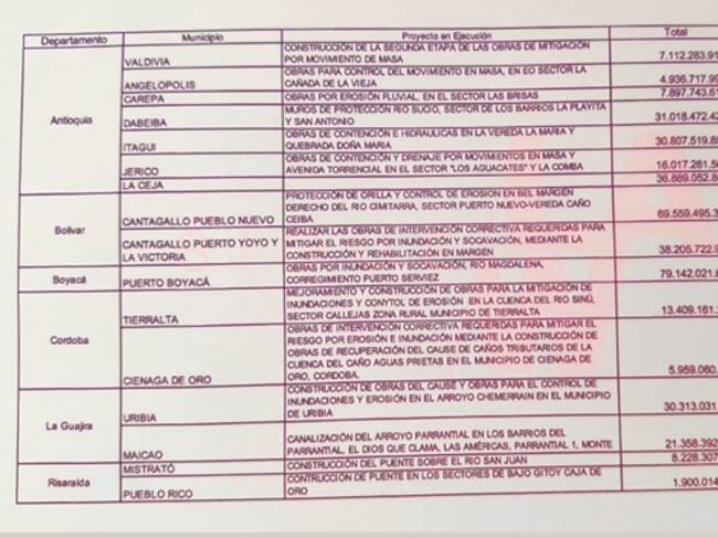 Se trata de 16 contratos que sumaron 402.754 millones, la mayoría tienen como objeto la realización de obras de mitigación para evitar la erosión de los ríos, Sigue La W revisó en detalle el cumplimiento de cada uno de los contratos y aunque no han iniciado, sí se han entregado anticipos del 20% del valor de los proyectos.
