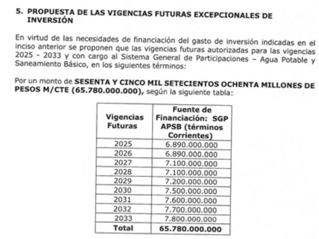Los recursos solicitados en vigencias futuras excepcionales serán pagados durante los próximos 10 años.