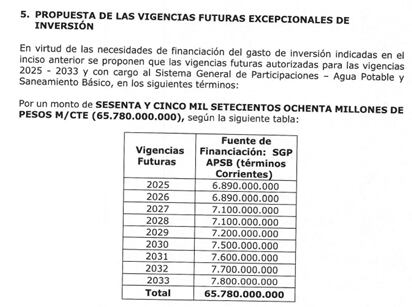 Los recursos solicitados en vigencias futuras excepcionales serán pagados durante los próximos 10 años.