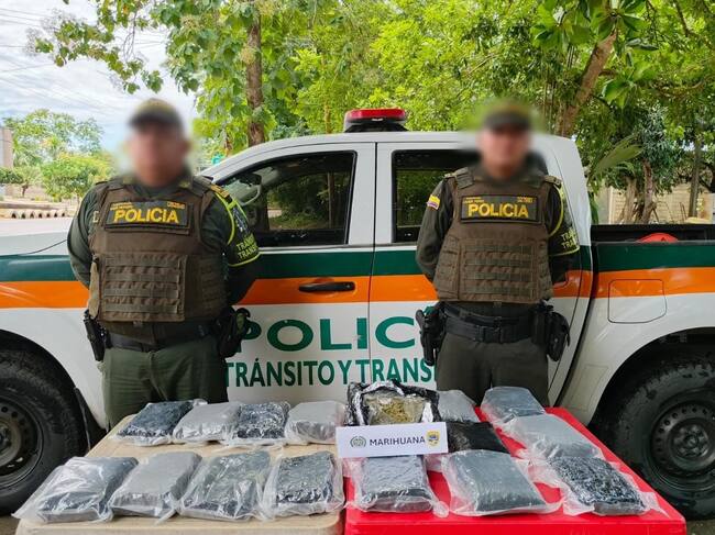 Incautan 15 kilos de marihuana tipo ‘creepy’ en vía del departamento de Córdoba. Foto: Policía.