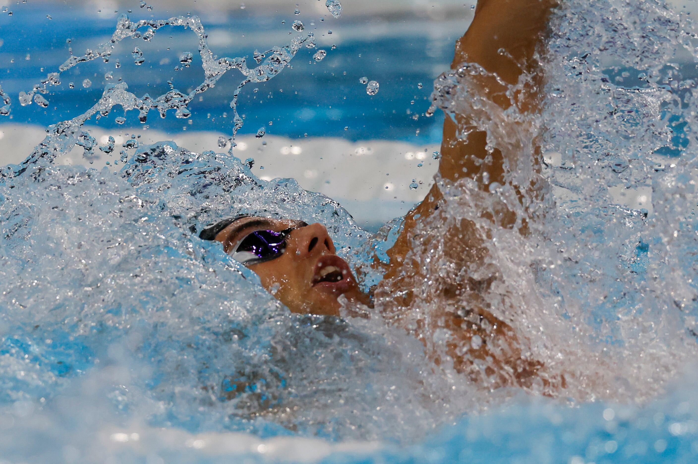 NANTERRE, 28/07/2024.- La colombiana Stefanía Gómez Hurtado compite en la segunda manga de los cuartos de final de los 100m braza femeninos en La Defense Arena en Nanterre, Francia, con motivo de los Juegos Olímpicos París 2024, este domingo. EFE/ Lavandeira Jr / Lavandeira Jr