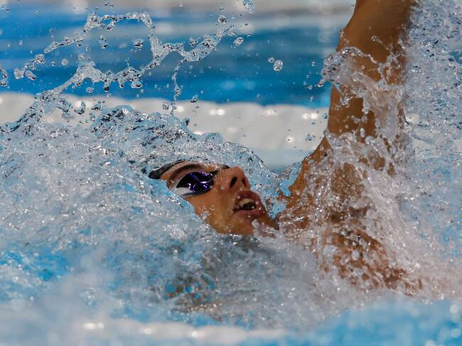 NANTERRE, 28/07/2024.- El colombiano Anthony Rincón Velasco compite en la segunda manga de los cuartos de final de los 100m espalda masculinos en La Defense Arena en Nanterre, Francia, con motivo de los Juegos Olímpicos París 2024, este domingo. EFE/ Lavandeira Jr / Lavandeira Jr