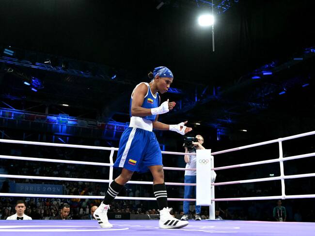 Colombia's Ingrit Lorena Valencia Victoria celebrates after winning against Australia's Monique Suraci in the women's 50kg preliminaries round of 16 boxing match during the Paris 2024 Olympic Games at the North Paris Arena, in Villepinte on August 1, 2024. (Photo by MOHD RASFAN / AFP) (Photo by MOHD RASFAN/AFP via Getty Images) / MOHD RASFAN