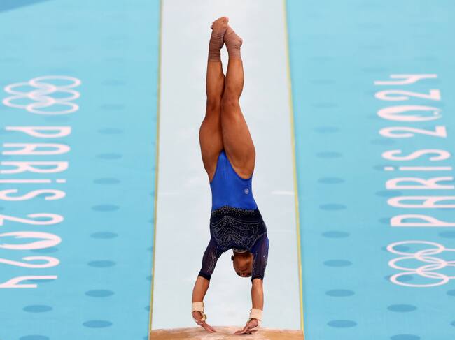 PARIS, FRANCE - AUGUST 01: Luisa Blanco of Team Colombia competes on the Vault during the Artistic Gymnastics Women's All-Around Final on day six of the Olympic Games Paris 2024 at Bercy Arena on August 01, 2024 in Paris, France. (Photo by Christian Petersen/Getty Images) / Christian Petersen