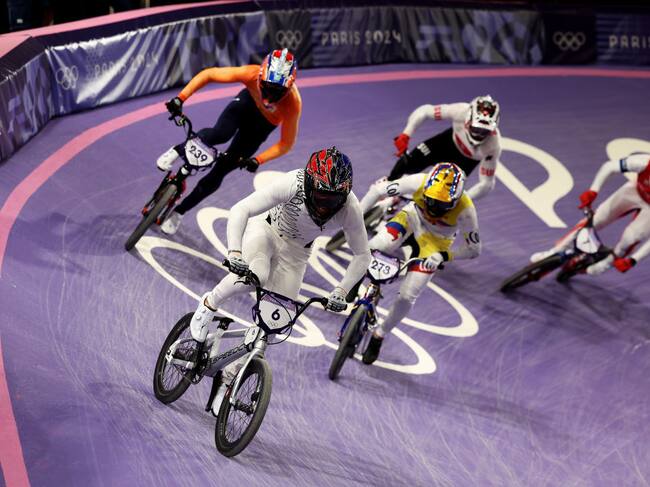 PARIS, FRANCE - AUGUST 01: Mariana Pajon Londono of Team Colombia competes during the Women's Last Chance Race on day six of the Olympic Games Paris 2024 at Saint-Quentin-en-Yvelines BMX Stadium on August 01, 2024 in Paris, France. (Photo by Alex Broadway/Getty Images) / Alex Broadway