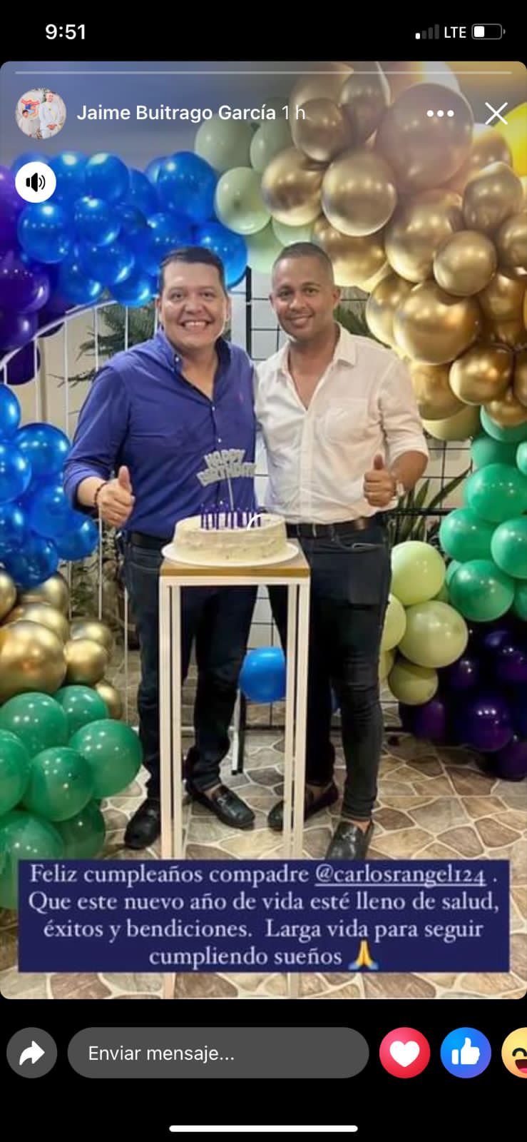 Sobre la cercanía del funcionario con el mandatario Buitrago, reveló que Rangel es compadre sacramental de Jaime Luis Buitrago y así está en sus redes sociales “son compadres porque bautizó un hijo de Jaime Luis, es una amistad manifiesta que constituye un impedimento para desempeñar el cargo entre el alcalde y el personero, él no está haciendo ningún control”