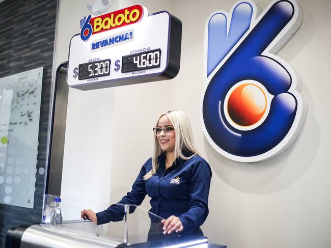 Funcionaria de la entidad Paga Todo y de fondo el tablero con unos valores a jugar de Baloto (Foto vía Colprensa) / John Paz