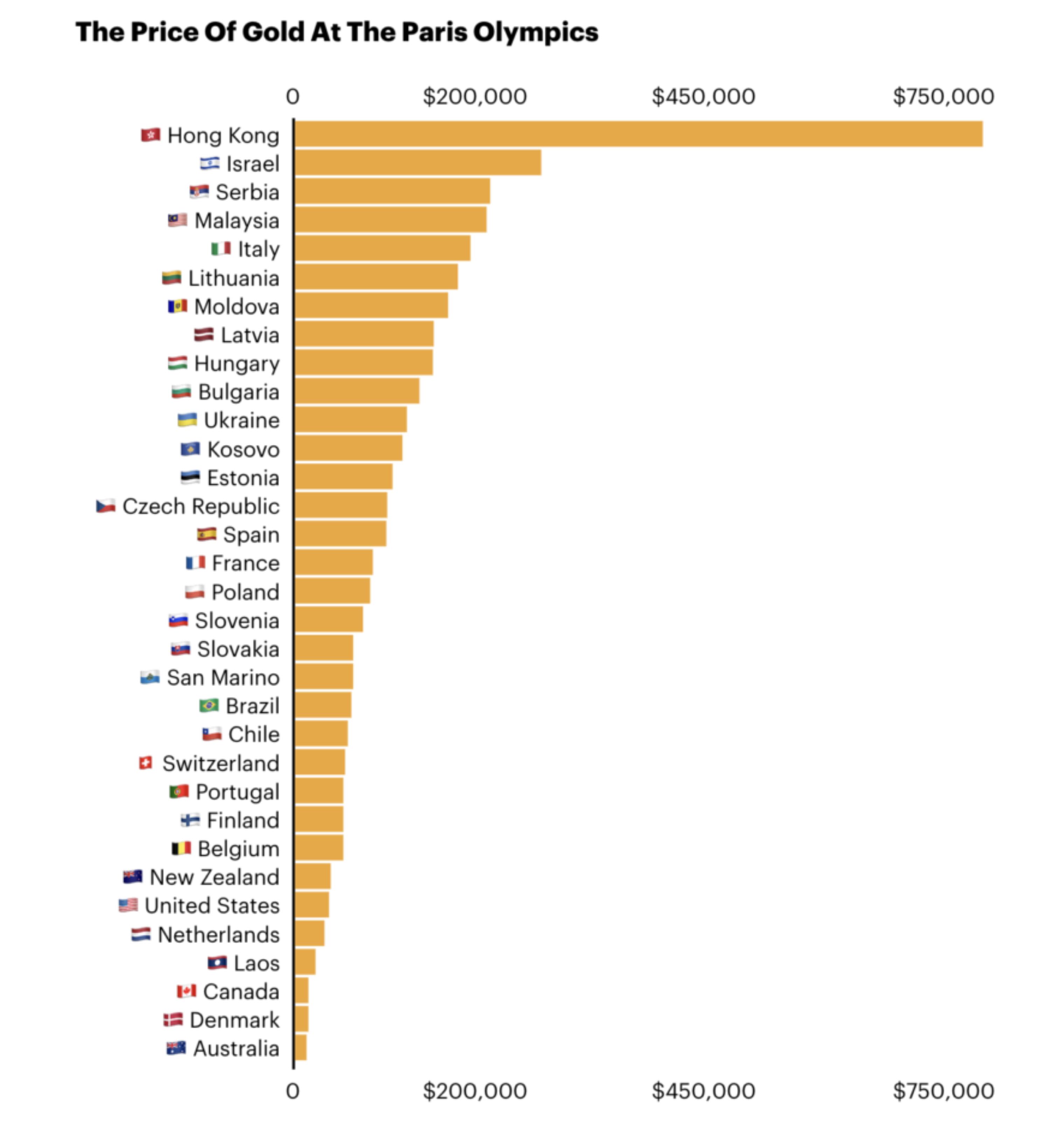 Vea aquí el grafico completo de los países que más dinero entregan a sus medallistas