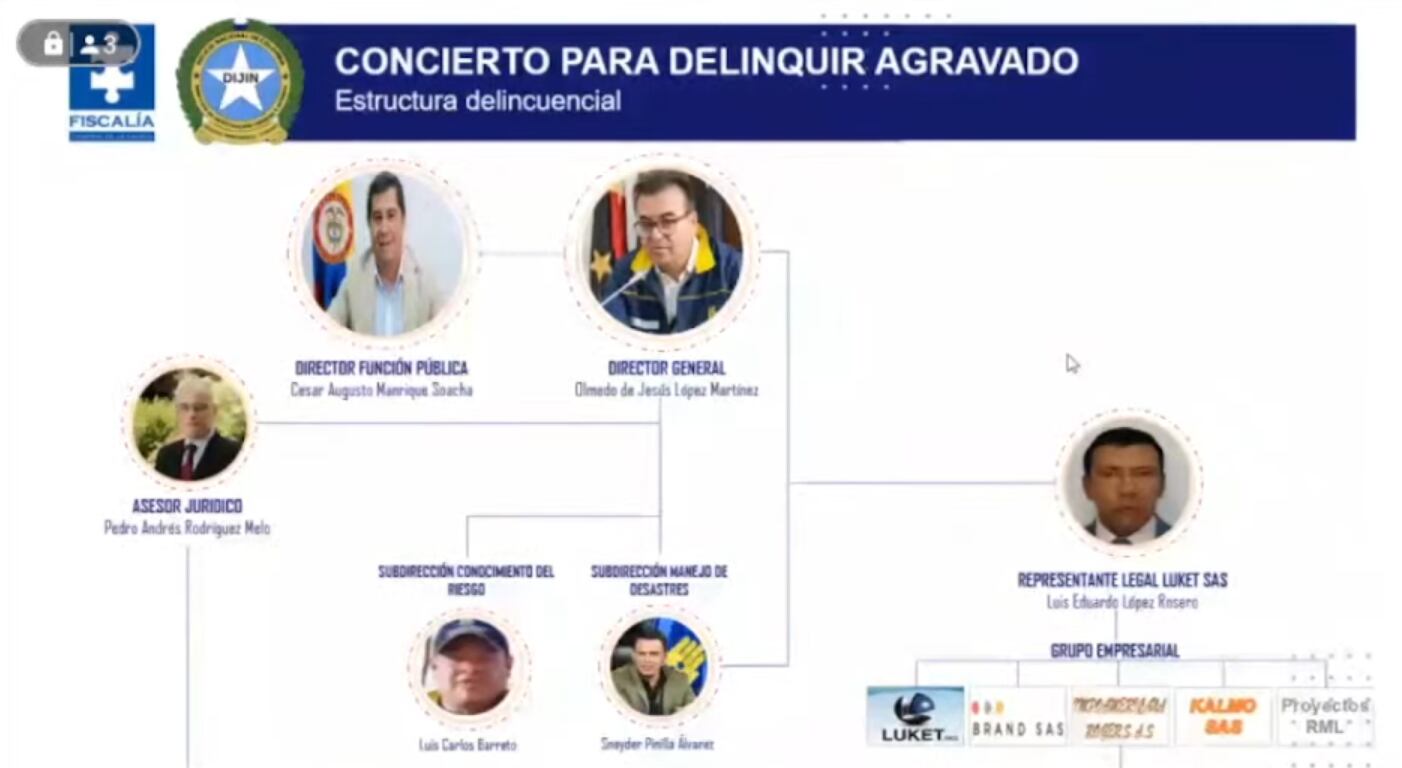 La Fiscalía explicó por qué infiere que los protagonistas del desfalco a la Unidad de Gestión del Riesgo incurrieron en el delito de concierto para delinquir.