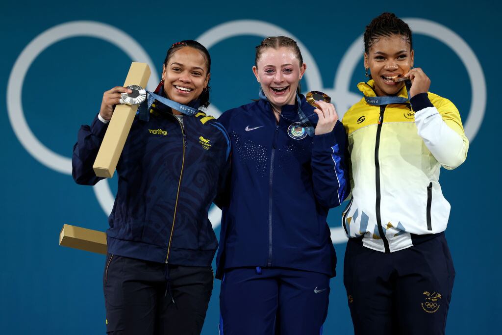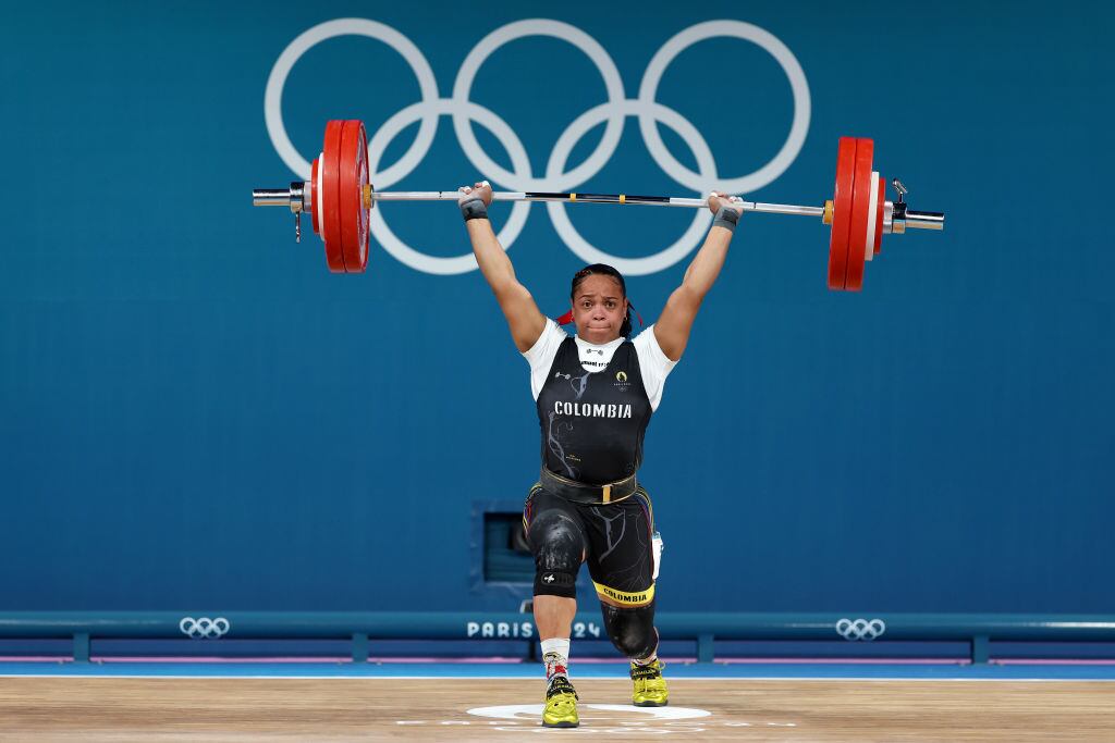 La colombiana, en el envión, logró un primer levantamiento exitoso de 135 kg, seguido de uno de 140 kg que la acercaron más a la presea.