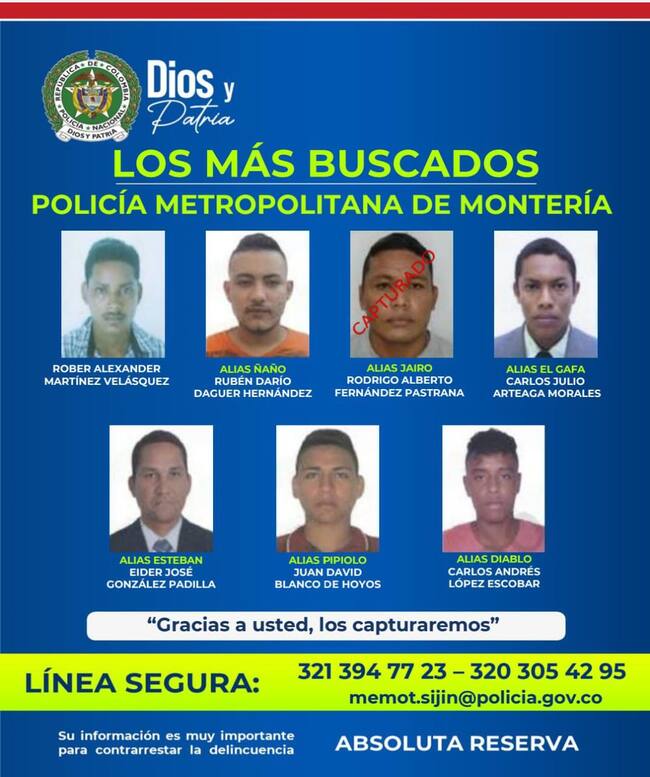 Los más buscados por la Policía Metropolitana de Montería. Foto: Policía Nacional.