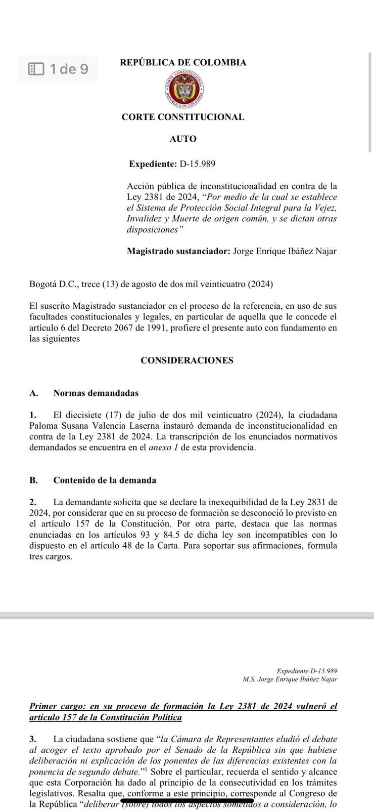Corte Constitucional admitió demanda contra la reforma pensional
