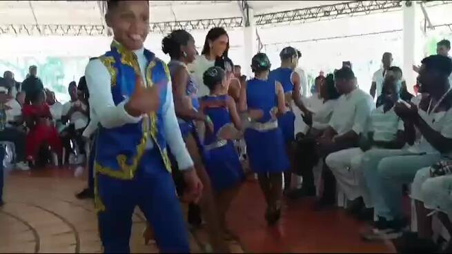 Una marimba interpretando ‘Stand By Me’ y más de 200 lideresas del Pacífico colombiano recibieron en la ciudad de Cali a los duques de Sussex, en su último día de recorrido por Colombia.
