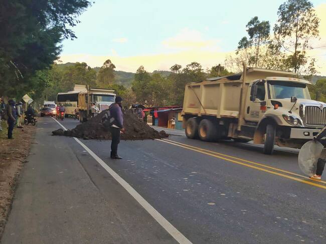 Bloqueo de comunidades en el sector de El Túnel en Cajibío, Cauca. Crédito: Red de Apoyo Cauca.