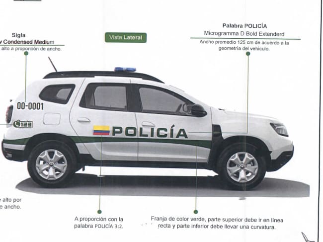 A partir de ahora, el 20% del color de los vehículos de la institución será verde y el 80 % restante será blanco, reemplazando el azul y el diseño ajedrezado implementado en 2021 en el gobierno Duque.