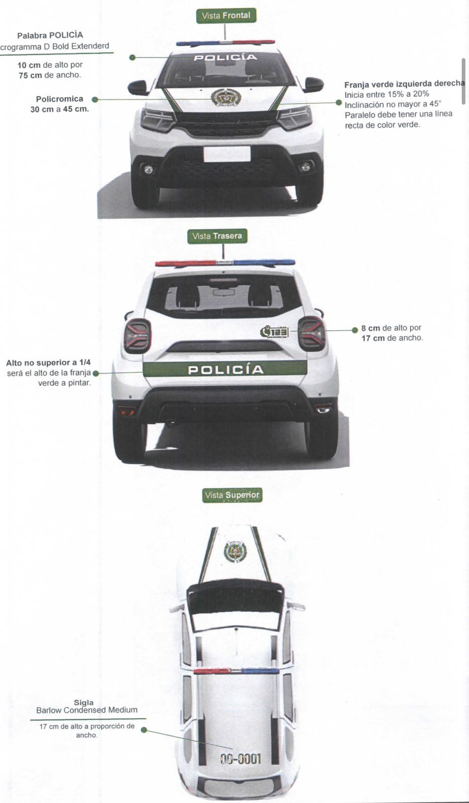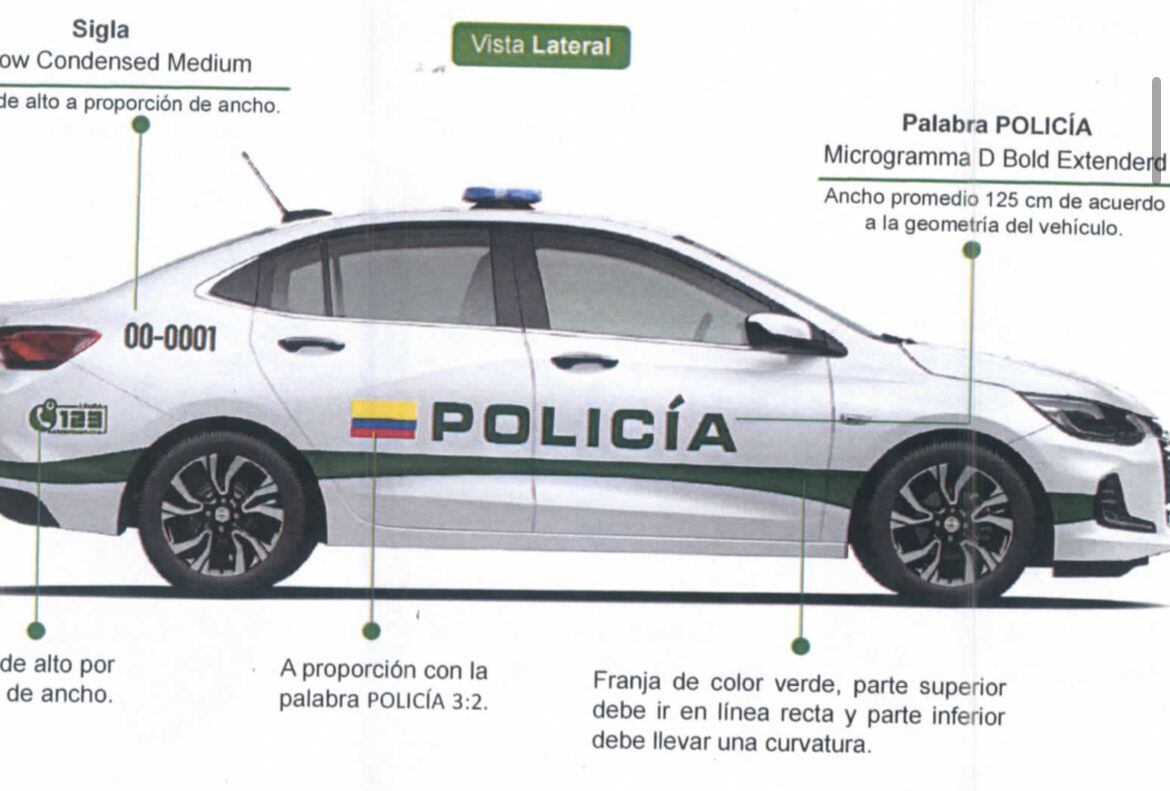 A partir de ahora, el 20% del color de los vehículos de la institución será verde y el 80 % restante será blanco, reemplazando el azul y el diseño ajedrezado implementado en 2021 en el gobierno Duque.