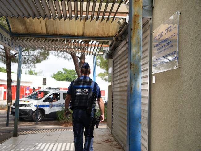 Agentes de Policía están desplegados para proteger sinagogas, centros culturales y colegios judíos, tras el ataque contra la sinagoga Beth Yacoov, en la localidad de La Grand Motte, junto a la ciudad de Montpellier en el sur de Francia, que se investiga como un acto terrorista. EFE / Policía Municipal de Montpellier / Policía Municipal de Montpellier (EFE)