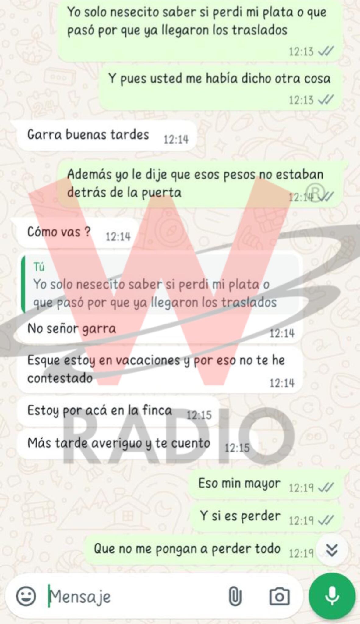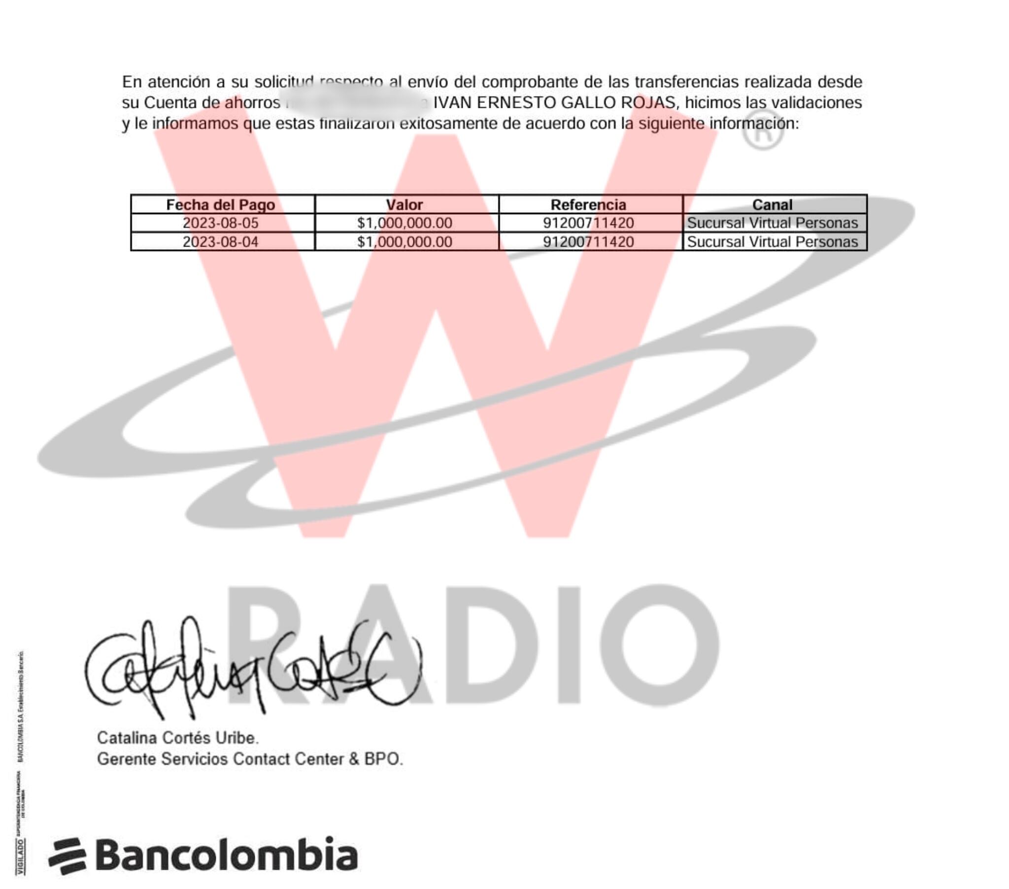 El soldado relató a W Radio que, después del contacto, le envió “el número de cuenta y dijo que eran 2 millones de pesos, y le dije que si podía hacerla en dos transferencias para tener pruebas, por si se borraban los registros, un millón ese día y un millón al otro día, más o menos en agosto de 2023 por Bancolombia (…) después me dijo que en noviembre se sabía todo, pero no llegó nada, esperé hasta diciembre, llegó enero, me comunico con él porque no llegó ninguna notificación, me dijo que iba a verificar y me llamó al ratico, y me dijo que si me gustaría irme para el Gaula Caquetá y le volví a enviar los datos, eso fue para enero de este año”.